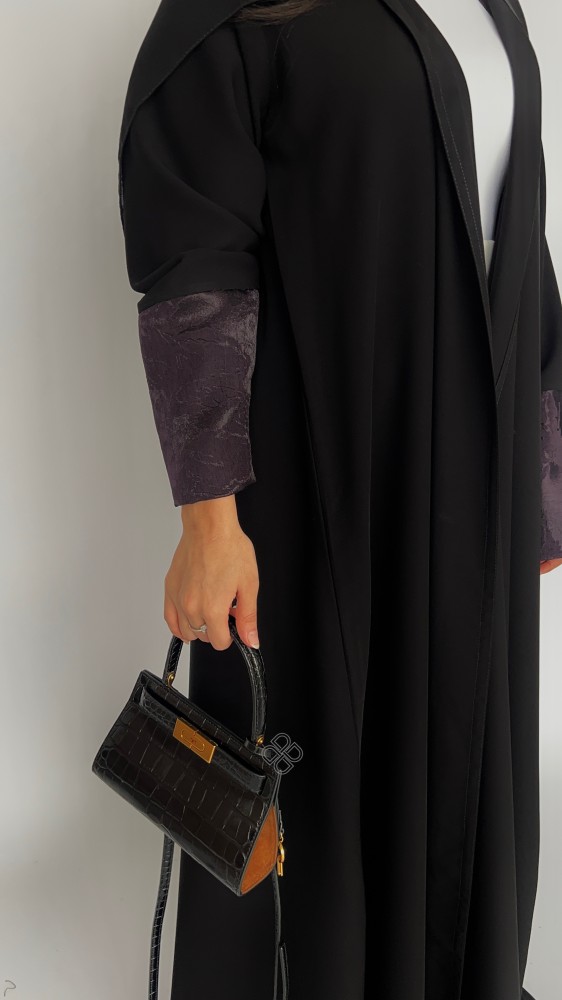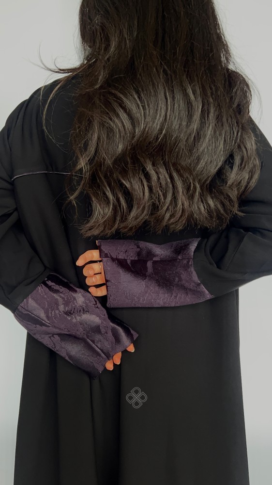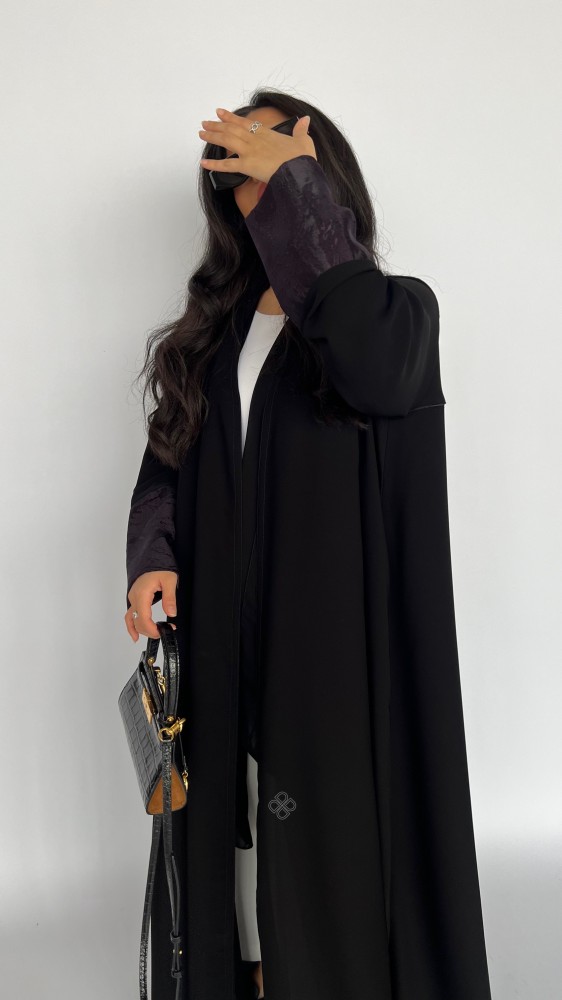 كريب ملكي والاكمام ومن الخلف حرير تركي لون بنفسجي القصه A والطرحه ساده .