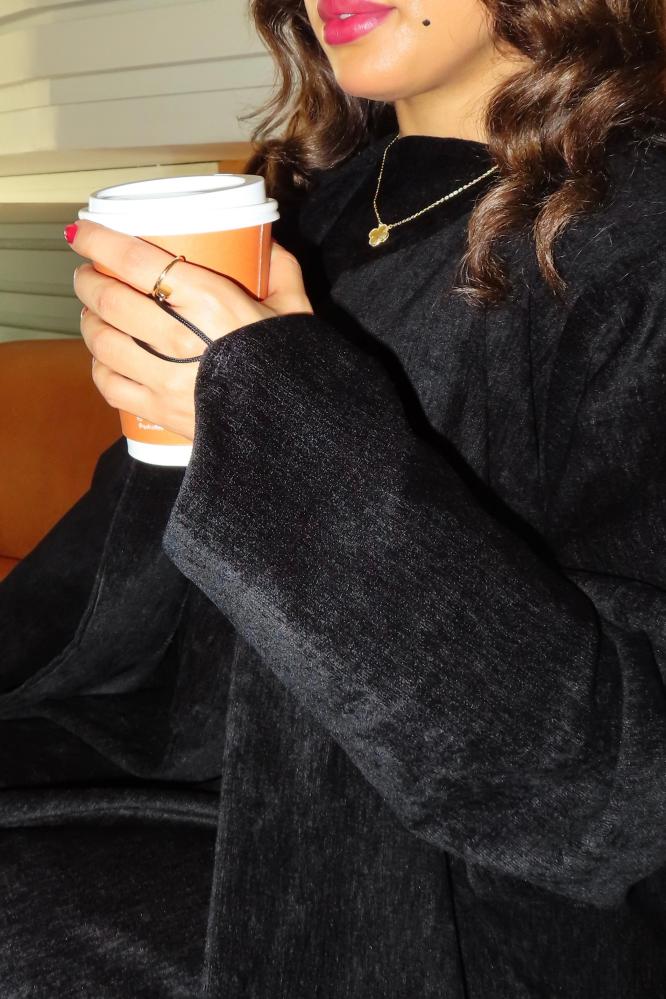مخمل كوري القصه كلوش وطرحه طرف مع امكانية تغيير القصه عند الطلب في خانة الملاحظات