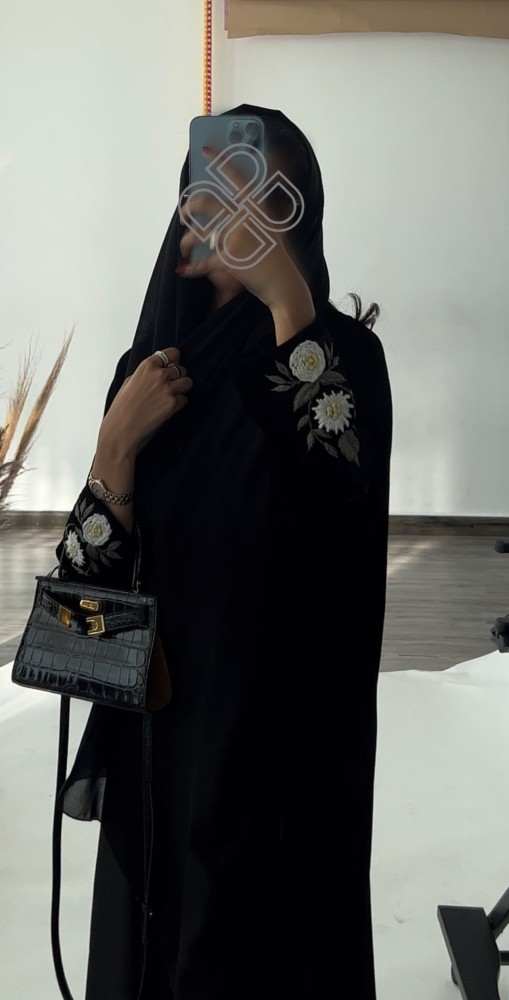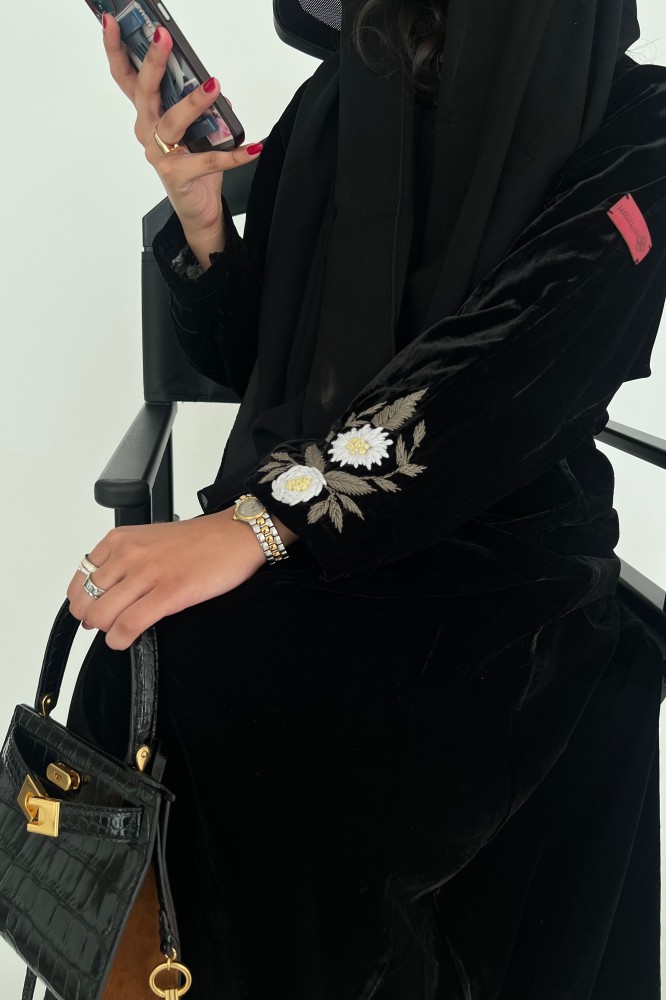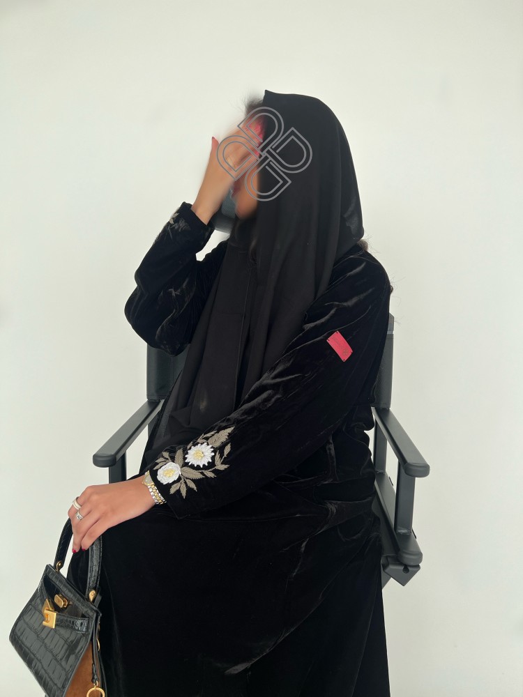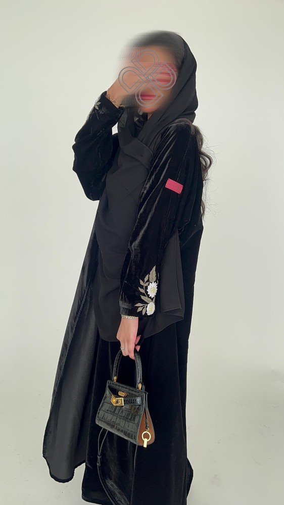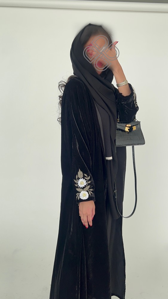 مخمل كوري والاكمام تطريز يدوي القصه كلوش مع طرحة ساده .