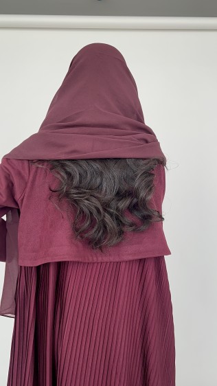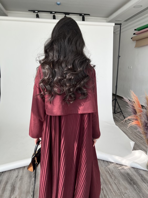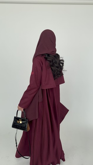 شامواه عنابي قصة بلايزر ومن الخلف مكسر مع طرحه ساده .