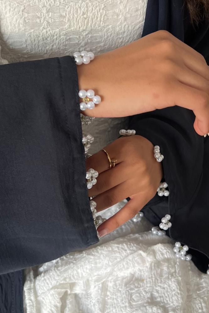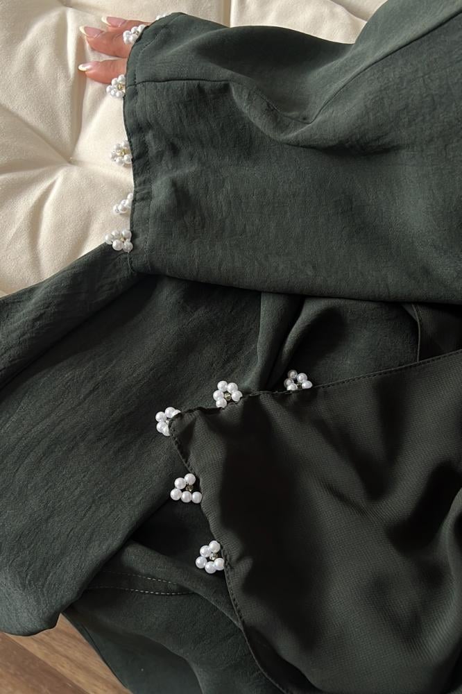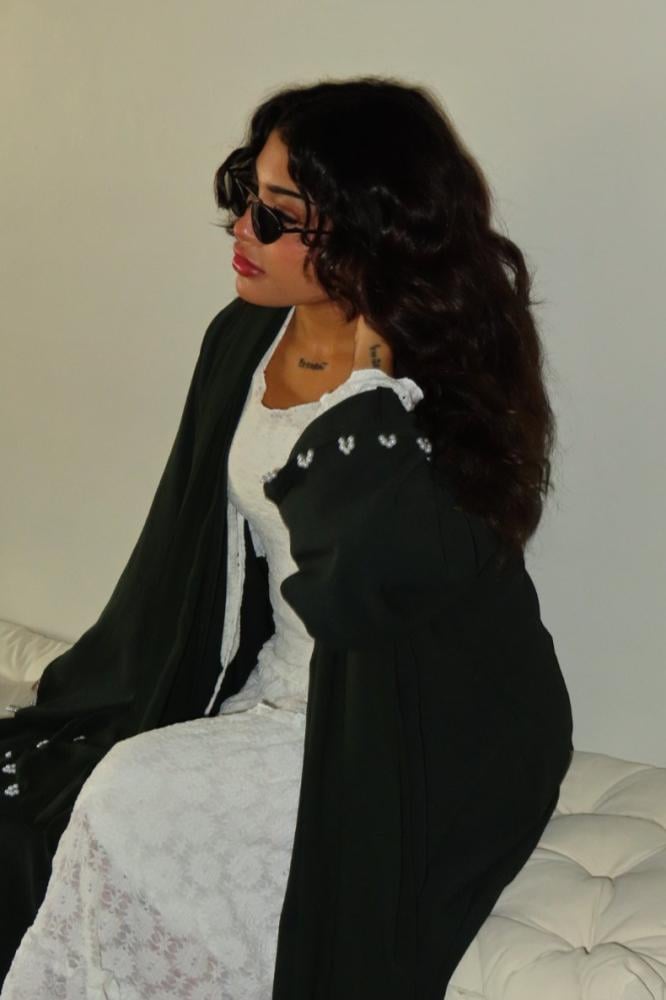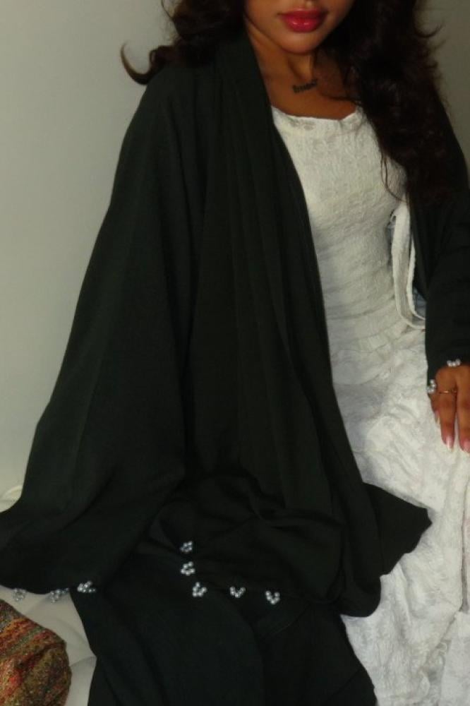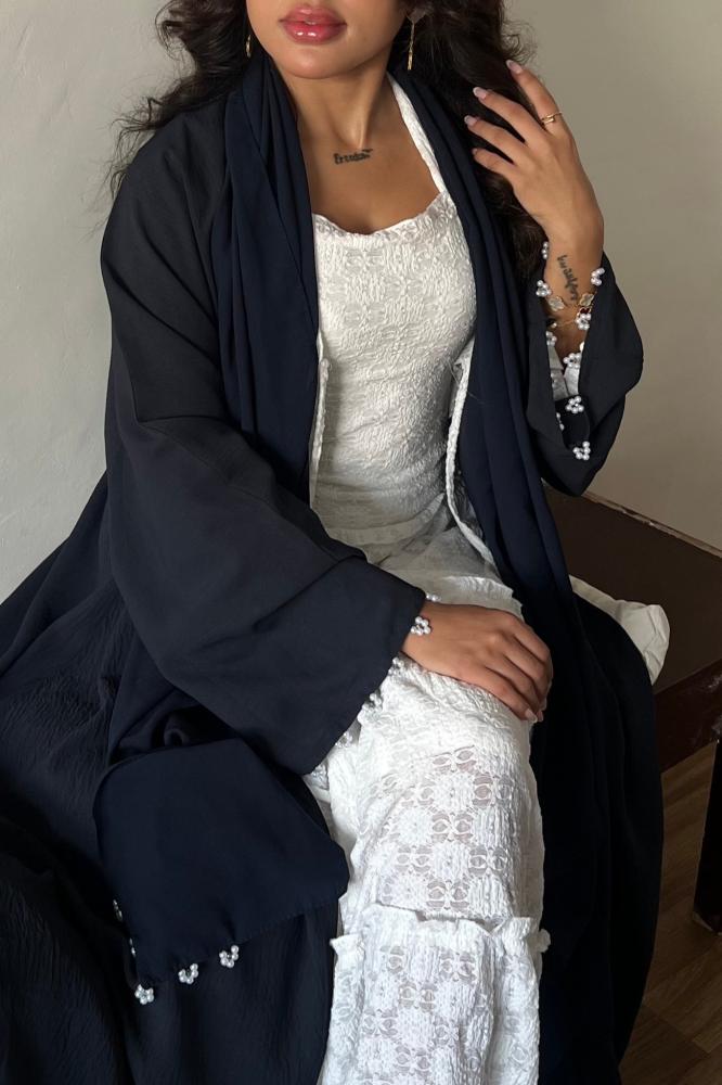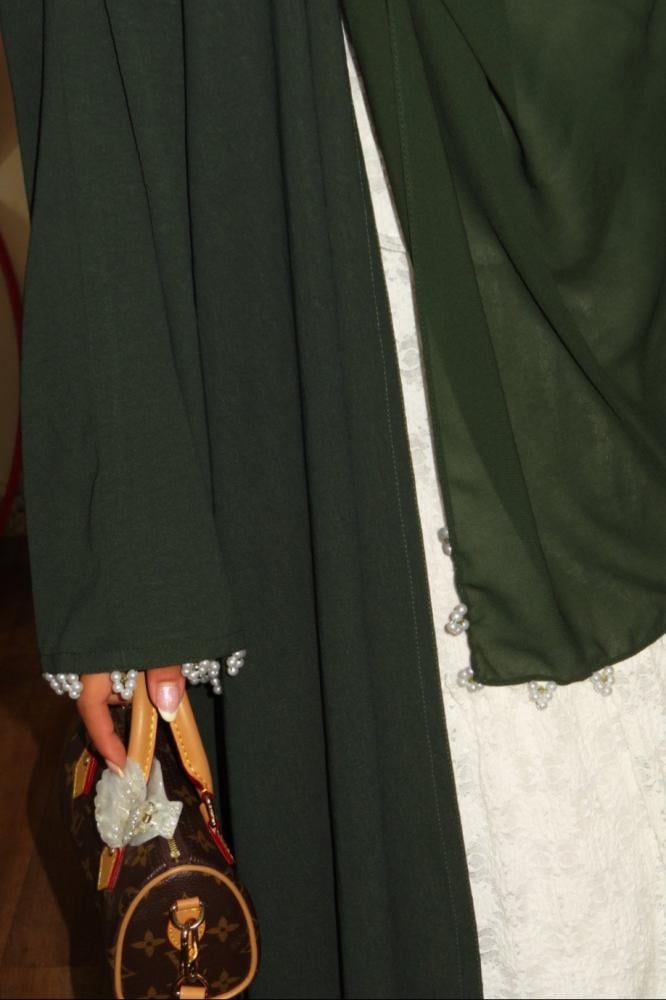 كريب والاكمام والطرحه تطريز يدوي -الطرحه فقط طرف واحد نفس الموضح بالصور - القصه كلوش "مع امكانية تنفيذه بقصه مختلفه "