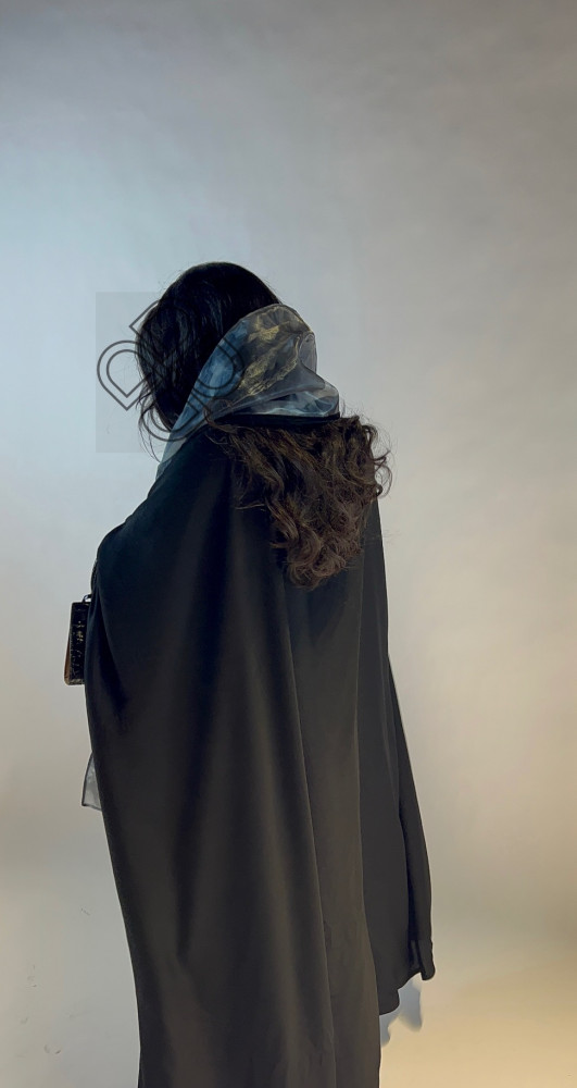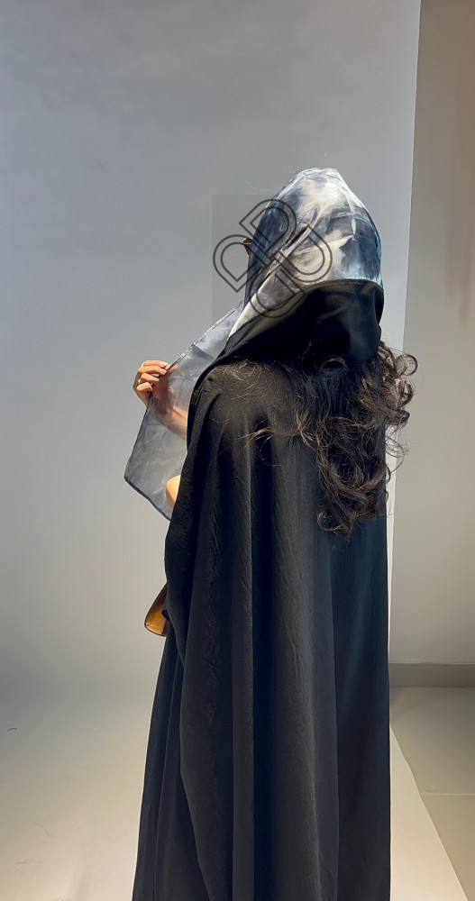 التفاصيل: حرير مغسول لون اسود قصة بشت ،الطرحه نص شيفون مشجر لون رمادي .