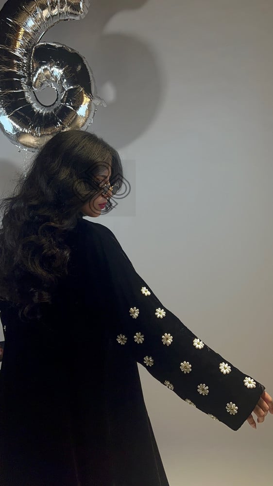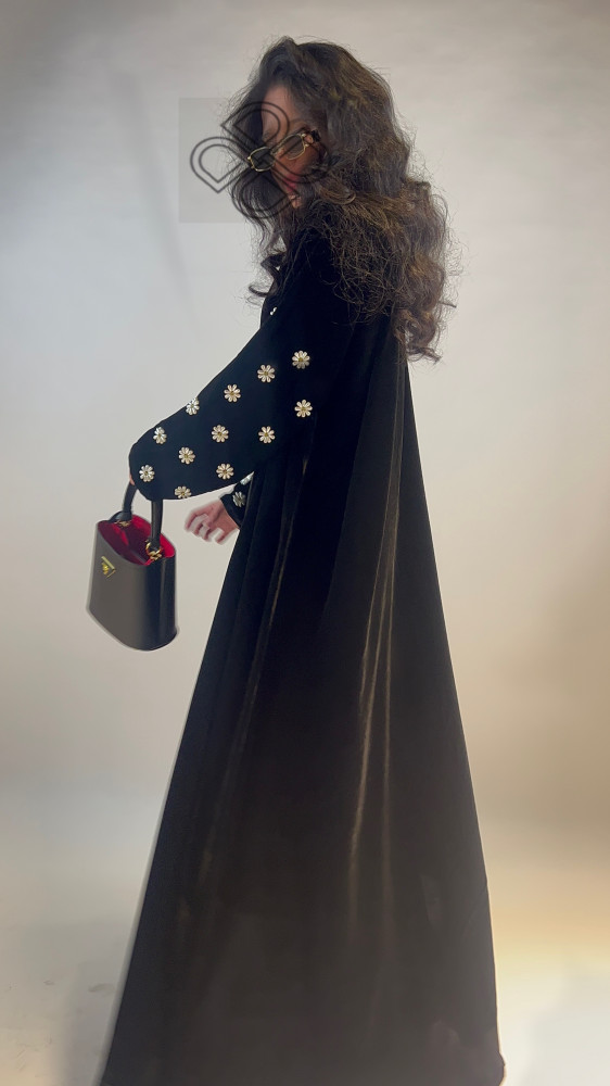 شمواه أسود الاكمام شك يدوي القصه كلوش ، الطرحه سادة.